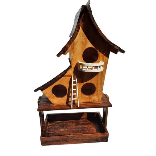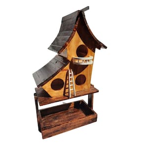 Casa passarinho com tres ninhos e comedouro, toda feita artesanalmente em madeira nobre resistente a sol e chuva. Perfeita para pássaros silvestres visitarem seu jardim .