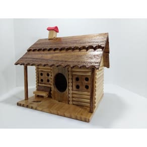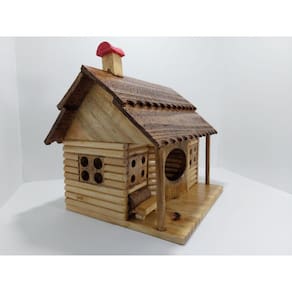 Casa Passarinho Estilo Rancho Florestal: Para abrigo de pássaros de pequeno e Médio Porte. Toda feita artesanalmente em madeira resistente ao sol e chuva, com lindos detalhes no telhado, além de portas e janelas vazadas.