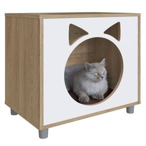 A Casa Pet para Gato Oak é feita de MDP, um material resistente e durável. Seu revestimento em FF confere um acabamento fosco elegante. Com dimensões de 54x53x36 cm e peso de 11.56 kg, o produto é compacto e fácil de movimentar. Ele suporta até 25 kg, garantindo a segurança do seu gato.
