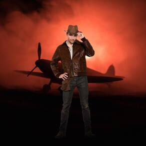 Jaqueta masculina de camurça sintética dos anos 40 da Segunda Guerra Mundial da Forum Novelties, marrom