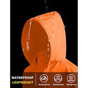 Casaco de chuva COOFANDY impermeável com capuz para homens laranja XL