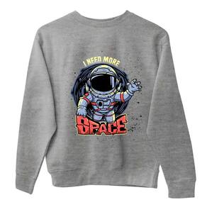Casaco de Moletom Gola Careca Unissex Punho Com Ribana Quentinho Blusa de Frio Estampada Astronauta - Cinza - GG