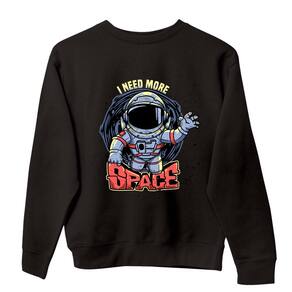 Casaco de Moletom Gola Careca Unissex Punho Com Ribana Quentinho Blusa de Frio Estampada Astronauta - Preto - GG