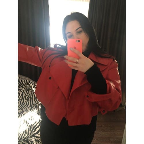 Casaco de motoqueiro de couro sintético para mulheres - vermelho