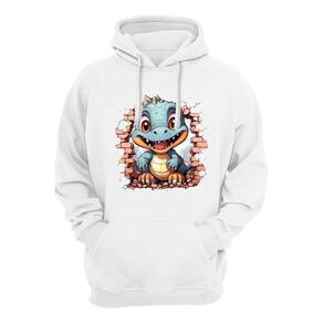 Casaco Moletom Canguru Com Capuz Masculino Estampa Dinossauro Flanelado - Branco - M