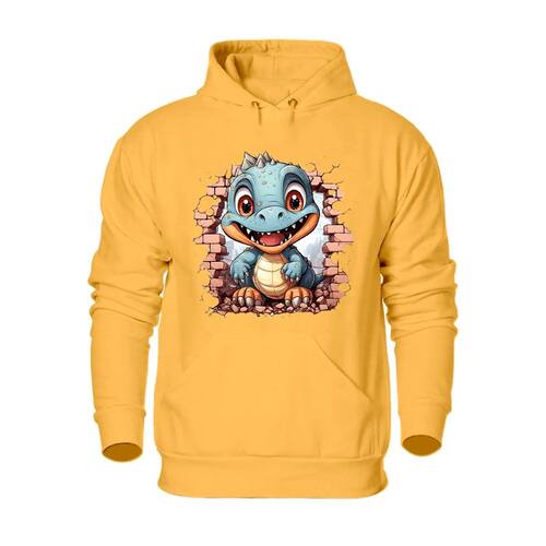 Casaco Moletom Canguru Com Capuz Masculino Estampa Dinossauro Flanelado - Amarelo - P
