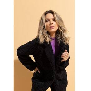 Casaco pelo carneiro, com bolsos e gola Onexx