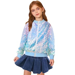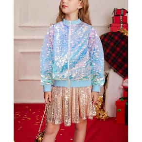 WINAIYA Jaqueta bomber feminina de lantejoulas com glitter, manga comprida, com zíper, 5-12 anos, Azul, 8-9 anos - SPARKLY: as jaquetas femininas de lantejoulas refletirão cores brilhantes sob diferentes ângulos de luz - OCASIÃO: jaquetas de lantejoulas para meninas são a melhor roupa para vestir TS ou Halloween, extrovertido, festa dos anos 70 - BOLSO: O design de bolso oculto o torna diferente de outras jaquetas e vestidos de lantejoulas - Combinação: as jaquetas femininas de lantejoulas têm muitas possibilidades e podem ser usadas com jeans, saias e tênis. - LAVAGEM: É preferível lavar à mão, no entanto, pode ser capaz de suportar um ciclo Aentle dentro de uma bolsa de proteção para máquina de lavar.
