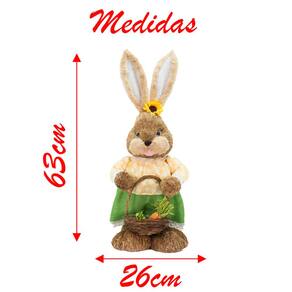 Casal De Coelhos Páscoa Enfeite Palha Coelhinhos Jardineiros 63cm -