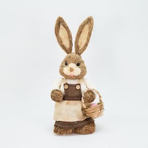Casal De Coelhos Páscoa Enfeite Palha Coelhinhos Trabalhadores 46cm -