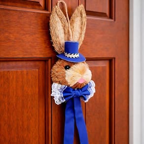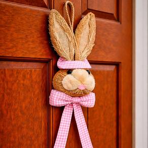Deixe sua decoração de Páscoa ainda mais charmosa com estes lindos pendentes em formato de cabeça de coelho com laço. Produzido em palha, traz um visual rústico e delicado que combina perfeitamente com decorações naturais, clássicas ou modernas