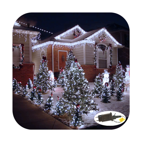 Linda Cascata Led à prova d’água, com 300 Leds. Possui 10 funções (9 funções de pisca pisca e 1 fixa) medindo 6 metros de largura e com fio branco.