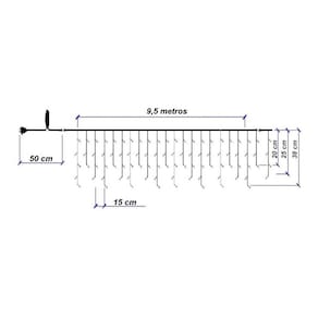 - Altura de cada fio de Led varia entre 20x25x38cm