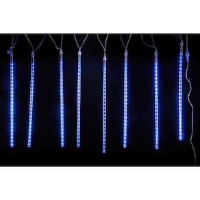 São 8 tubos com LED na cor Azul que simulam uma Chuva de Neve. Eles podem ser fixados em árvores, janelas, portas, paredes, ou em qualquer ambiente coberto.