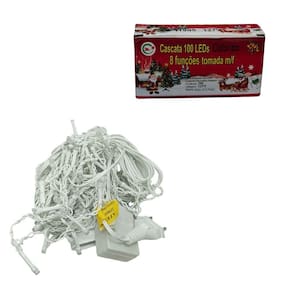 Cascata De Natal 100 Leds - 8 Funções - Chibrali - Led Colorido C- Fio Branco