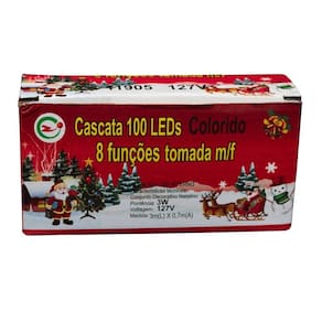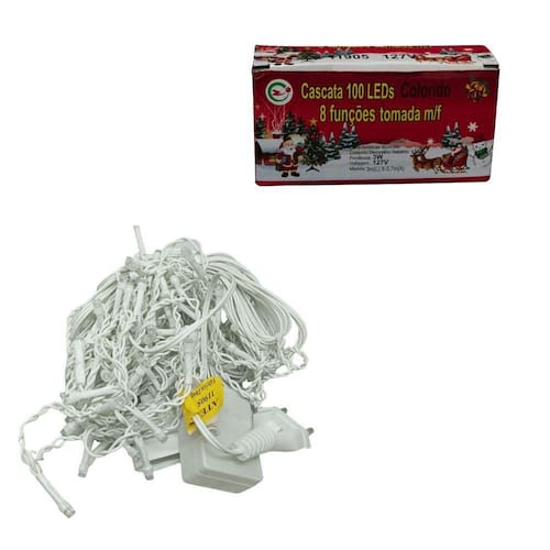 Cascata De Natal 100 Leds - 8 Funções - Chibrali - Led Colorido C/ Fio Branco