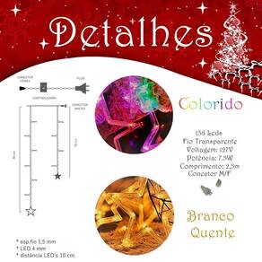 Cascata Estrela 138 Led 2,5 Metros Extensível 127V-Colorido