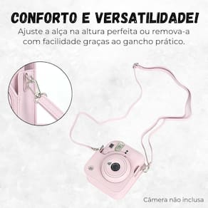 Case bag magnética c alça para câmera instax mini 12 + álbum Cor: lilás capture seus momentos especiais e guarde-os em grande estilo este kit exclusivo traz uma case bag magnética e um álbum de fotos personalizável, perfeitos para proteger sua câmera e organizar suas memórias. A case bag combina design e funcionalidade: com fechamento magnético, recortes precisos e uma alça ajustável e removível, ela protege sua instax mini 12 contra quedas e riscos, enquanto oferece praticidade no uso e transporte. Disponível em 5 cores encantadoras, ela eleva o estilo da sua câmera. O álbum de fotos é um verdadeiro destaque, com capa dura resistente e espaço para personalização. Guarde até 64 fotos de 8,5 x 5,5 cm, organizando suas lembranças de forma segura e elegante. Compacto e leve, ele é ideal para levar em passeios e viagens, mantendo suas memórias sempre ao alcance. Imagine ter um kit completo que une proteção, praticidade e personalização suas fotos capturadas com a instax mini ganham um espaço especial e organizado, enquanto sua câmera é protegida com estilo e segurança. O kit case bag magnética + álbum personalizável para instax mini 12 e transforme suas recordações em verdadeiras joias para reviver sempre que quiser ------------------ ------------------ o que está incluso neste kit R: o kit inclui uma case bag magnética para proteger sua instax mini 12 e um álbum de fotos personalizável com espaço para guardar até 64 fotos. a câmera instax mini 12 está inclusa no kit R: não, a câmera instax mini 12 não está inclusa. O kit é composto apenas pela case e o álbum de fotos. qual o tamanho das fotos que o álbum comporta R: o álbum foi feito para armazenar fotos no tamanho de 8,5 x 5,5 cm, compatível com as fotos tiradas pela instax mini 12. o álbum é resistente R: sim o álbum possui capa dura que garante a durabilidade e proteção das suas fotos, mantendo-as seguras e sem danos. posso usar a câmera sem tirar da case R: sim a case bag magnética foi projetada com recortes precisos que permitem o uso da câmera sem precisar retirá-la da case. o que significa o espaço de personalização no álbum R: o álbum possui uma capa dura com espaço específico para você personalizar com uma foto de sua escolha, tornando-o ainda mais pessoal e único. ------------------ Especificações ------------------ Case bag magnética Compatibilidade: instax mini 12 Material: resistente, protege contra quedas e riscos Dimensões: Altura: 13,7 cm Largura: 7,5 cm Comprimento: 11,7 cm Fechamento magnético para maior praticidade Recortes precisos para uso da câmera sem removê-la da case Alça ajustável e removível com gancho prático Álbum de fotos personalizável Capacidade: 64 fotos de 8,5 x 5,5 cm Espaço para foto de personalização na capa Capa dura resistente Proteção interna plástica para manter suas fotos seguras Dimensões: Altura: 24 cm Largura: 11,5 cm ------------------ Conteúdo ------------------ 1x case para instax mini 12 1x álbum de fotos. Anúncio referente a case + álbum Acessórios que ambientam as fotos não inclusos. ------------------ Apresentação: ------------------ - qualidade garantida. - atendimento qualificado. - enviamos para todo o brasil. - compra garantida. - despachamos em até 1 dia útil após confirmação do pagamento Garantimos a devolução por arrependimento em até 7 dias, após o recebimento e de 15 dias contra defeitos de fabricação.