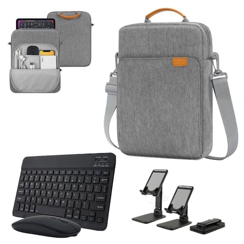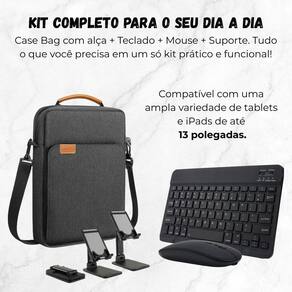 Case bag + suporte + teclado para tablet samsung s10fe+ 13.1 Cor: cinza Cansada de digitar direto na tela ou usar o tablet com pouca ergonomia Este kit é a solução perfeita para transformar seu tablet ou em uma verdadeira estação de trabalho Teclado e mouse bluetooth de conexão rápida e estável, você garante produtividade com conforto. As teclas são macias e silenciosas, e o mouse oferece precisão no clique. O suporte universal dobrável é leve, resistente e ajustável - ideal para usar em casa, no trabalho ou em viagens. Tudo funciona via bluetooth, sem cabos basta ligar os dispositivos, ativar o modo pareamento fn + c no teclado e conectar ao seu tablet ou . Reconhecidos como bluetooth keyboard e bluetooth mouse, você emparelha em segundos e aproveita a liberdade de trabalhar, estudar ou assistir com muito mais conforto. Adquira agora seu kit completo e leve mais praticidade, ergonomia e produtividade para o seu dia a dia. Compatível com ipads, tablets android, windows e muito mais ------------------ ------------------ O teclado e o mouse funcionam é universal R: sim o kit é compatível com ipads, tablets android, windows e qualquer dispositivo com bluetooth. Precisa de aplicativo ou cabo para usar R: não basta ligar o teclado e o mouse, ativar o bluetooth do seu dispositivo e conectar. É simples, rápido e sem fios. Como faço para conectar o teclado e o mouse Ligue o botão on no teclado e no mouse. - no teclado, pressione fn + c para ativar o modo pareamento. - no seu dispositivo, ative o bluetooth e conecte aos nomes bluetooth keyboard e bluetooth mouse. O suporte é ajustável R: sim o suporte é dobrável e permite diferentes ângulos para oferecer mais conforto ao assistir, digitar ou fazer chamadas de vídeo. Funciona com celular também R: sim, desde que o celular tenha bluetooth e suporte a dispositivos de entrada como teclado e mouse . Ideal para produtividade e praticidade ------------------ Especificações ------------------ Teclado bluetooth: Conexão: bluetooth 3.0 ou superior Alcance: até 10 metros Teclas: silenciosas e macias Ativação do bluetooth: fn + c Alimentação: via cabo usb cabo incluso Compatibilidade: ios, android, windows, ipados Mouse bluetooth: Conexão: bluetooth Botão liga/desliga na parte inferior Reconhecido como: bluetooth mouse Design ergonômico e leve Alimentação: bateria recarregável Compatibilidade: ios, android, windows, macos Suporte universal: Material: plástico resistente + base antiderrapante Dobrável e portátil Ângulo ajustável Compatível com tablets, ipads e celulares Ideal para uso em mesa, escritório, estudo ou lazer ------------------ Conteúdo ------------------ 1x case transversal 1x teclado bluetooth 1x mouse bluetooth 1x suporte universal dobrável 1x cabo usb para recarga 1x manual de instruções Anúncio referente a teclado + mouse + suporte universal Acessórios que ambientam as fotos não inclusos. ------------------ Apresentação: ------------------ - qualidade garantida. - atendimento qualificado. - enviamos para todo o brasil. - compra garantida. - despachamos em até 1 dia útil após confirmação do pagamento Garantimos a devolução por arrependimento em até 7 dias, após o recebimento e de 15 dias contra defeitos de fabricação.
