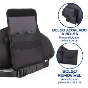 A alça de ombro machuca após horas? Não — é acolchoada e ajustável para uso prolongado com conforto.