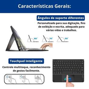 - conexão sem fio: A tecnologia bluetooth permite uma conexão sem fio estável entre o teclado e o tablet, evitando a necessidade de fios e cabos. O touchpad inteligente proporciona uma navegação precisa e intuitiva, enquanto o carregamento rápido garante que você nunca fique sem bateria.