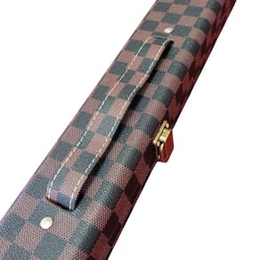 Estilo e proteção para quem joga com personalidade. Este case de luxo foi criado para jogadores que utilizam tacos rosqueáveis (3/4) e buscam transportar seu equipamento com segurança sem abrir mão do design. Sua estrutura em madeira, revestida em PU marrom xadrez, garante resistência e sofisticação, enquanto o interior acolchoado protege o taco contra impactos e arranhões.