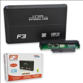 Case Externa Para Hd Sata 2,5 Usb 3.0 Até 4Tb - Cs-U3 Características: - Marca: F3 - Modelo: CS-U3 Especificações: - Interface: USB 3.0 - Tipo: Case 2,5 Sata - Conexão interna: SATA 6Gbps - Dimensões: 121 x 78 x 140 mm - Alimentação: Através da porta USB - Suporta os sistemas operacionais Windows / Linux e OSx - Compatível com USB 2.0 / USB 1.1 - Plug and Play - Cor: Preto Informações adicionais: - Case para maior proteção e dissipação de temperatura - Pratico para transporte e transferência de dados ou backup. - O sistema reconhece como se fosse outro disco rígido, só que removível. - Aceitando discos rígidos Serial ATA de 2.5 - O Hard Disk não acompanha o produto. Conteúdo da Embalagem: - 01x Case Externa Para Hd Sata 2.5 Usb 3.0 - 01x Bolsa de Transporte - 01x Cabo USB 3.0