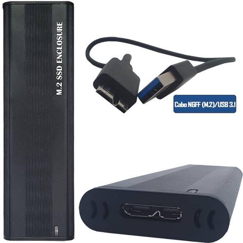 Características: Exterior de alumínio premium com design portátil. Plug and play, sem necessidade de drivers. Ambientes de sistema operacional compatíveis: Windows X0/Visa/&/8/8.1/10, OS 9.0 e superior Especificações: Interface:usb3.1/tipo-c Dimensão:l 107mm,W 33mm,H 10mm Cor:preto Material:plástico ABS e Alumínio Características: Exterior de alumínio premium com design portátil Plug and play, sem necessidade de drivers Ambientes de sistema operacional compatíveis: Windows XO/Visa/&/8/8.1/10, OS 9.0 e superior Dica: Se o seu computador não consegue reconhecer o case SSD. Siga as etapas: Para um novo SSD, você precisa entrar no gerenciamento de disco e inicializar o SSD primeiro, para que ele possa ser detectado e normalmente. Conclua a inicialização do disco de acordo com as etapas a seguir. Como iniciar o gerenciamento de disco Clique com o botão direito em Computador - Gerenciar - Gerenciamento de disco. Encontre seu disco não alocado, clique com o botão direito em Não alocado e escolha Assistente de novo volume simples. Como iniciar o gerenciamento de disco no Windows 10 Clique em Iniciar- Executar- digite compmgmt,msc- clique em OK. Alternativamente, clique com o botão direito no ícone Meu computador e selecione Managei.Lna árvore do console, clique em Gerenciamento de disco. Conteúdo do pacote: 1 Gabinete SSD M.2 1 Manual do usuário 1 Cabo NGFF M.2 / USB 3.1 Marca: Não Informado