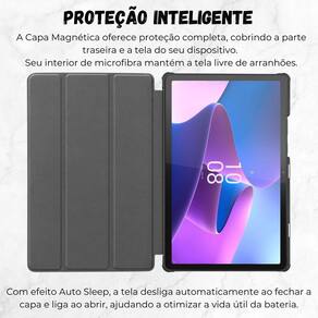 Case magnética para tablet lenovo m10 10.6 tb-x606f + caneta Cor: cinza imagine seu dispositivo totalmente seguro contra quedas acidentais, graças a capa resistente e durável. além de proteger contra impactos, essa capa é equipada com um interior de microfibras suave, que preserva a integridade da tela, mantendo-a livre de arranhões e pronta para o uso diário. o recurso auto sleep, acionado pelo sensor magnético integrado, não só economiza energia como prolonga a vida útil da bateria do seu tablet. Feche a capa para ativar o modo de suspensão e abra para ter seu dispositivo pronto para uso instantaneamente. mantenha seu tablet protegido e funcional em qualquer situação. Invista agora nessa capa inteligente que combina segurança e praticidade em um só produto ------------------ Atenção ------------------ Compatível com tablet lenovo m10 10.6 3 geração tb-x606f / tb-x606x . ------------------ ------------------ posso usar a capa com película R: sim, você pode usar a capa junto com a película sem problema, a case não interfere no uso da película. como a capa ajuda a economizar bateria no meu tablet R: a capa possui o recurso auto sleep, que desliga a tela automaticamente ao fechar a capa e liga ao abrir. Isso evita o consumo desnecessário de bateria, prolongando a duração da carga. a capa oferece proteção suficiente contra quedas R: sim a capa foi projetada com bordas reforçadas que absorvem o impacto em caso de quedas, protegendo seu tablet e reduzindo o risco de danos como rachaduras e quebras. posso ajustar o tablet para diferentes ângulos de visualização com essa capa R: sim a capa permite que você coloque o tablet em dois modos de uso: 30º para escrita e 65º para visualização, proporcionando conforto e praticidade no dia a dia. o revestimento interno protege a tela do tablet R: com certeza o interior da capa é revestido com microfibra, que cria uma barreira protetora para a tela, evitando riscos e danos durante o uso diário. ------------------ Especificações ------------------ Peso: 30g. Material interno: camurça. Compatível com tablet lenovo m10 10.6 3 geração tb-x606f / tb-x606x . ------------------ Conteúdo ------------------ 1x capa magnética. 1x caneta touch. Anúncio referente a case Tablet não incluso ------------------ Apresentação: ------------------ - qualidade garantida. - atendimento qualificado. - enviamos para todo o brasil. - compra garantida. - despachamos em até 1 dia útil após confirmação do pagamento garantimos a devolução por arrependimento em até 7 dias, após o recebimento e de 15 dias contra defeitos de fabricação. Marca: Star Capas E Acessórios