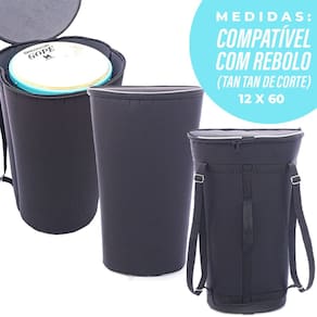 P: Serve em Rebolo ou Tan Tan 12 x 60 cm? R: Sim. A case foi projetada com base nas medidas padrão do mercado e comporta instrumentos com diâmetro de 32 cm e altura de 60 cm.