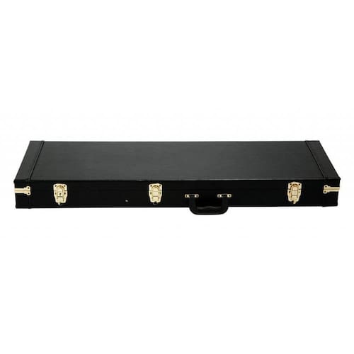 Case para Guitarra em acabamento preto, dimensionado para diferentes modelos de instrumentos, On-Stage GCE6000B: - Perfeito para estrada - Interior com formato customizado e apoio para o braço - Construção em madeira laminada e revestimento em vinil - Forro interno em pelúcia - Compartimento interno para acessórios, perfeito para palhetas ou capotrastes - 3 Trincos, 1 com trava - Opções de acabamento em tecido estilo Pele de Cobra, Vinil Preto e tecido Tweed - Hardware nas opções dourado ou cromado