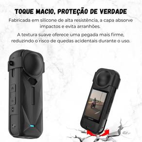 Case protetora premium de silicone para câmera insta 360 x5 Cor: preto mantenha sua insta x5 360 2025 segura e estilosa com a nossa capa de silicone premium diga adeus a arranhões e quebras nossa capa de silicone não só protege sua câmera contra danos, como também oferece uma textura suave e agradável ao toque. Mantenha sua câmera impecável e pronta para capturar os melhores momentos, sem comprometer o estilo. instalação em instantes e proteção que faz a diferença. Com cortes precisos, você terá acesso fácil a todos os botões e funcionalidades, garantindo que nada atrapalhe sua experiência de uso. não perca a oportunidade de manter sua insta 360 x5 2025 protegida e funcional. Compatível exclusivamente com a insta 360 x5 modelo 2025 . Não serve em versões anteriores como x3 ou x4. ------------------ ------------------ a capa de silicone protege minha câmera contra quedas R: sim, a capa de silicone protege sua insta x5 360 2025 contra arranhões, pequenas quedas e impactos, mantendo sua câmera segura e em perfeitas condições. a capa interfere no uso dos botões e funcionalidades da câmera R: não, a capa possui cortes precisos que garantem acesso fácil e total a todos os botões, portas e funcionalidades da câmera, sem comprometer o desempenho ou a usabilidade. o silicone da capa deixa a câmera escorregadia R: não, o silicone utilizado na capa tem uma textura suave, mas ao mesmo tempo oferece uma boa aderência, garantindo que a câmera permaneça firme em suas mãos. a capa é compatível com outros modelos da insta360 R: não, este modelo é compatível exclusivamente com a insta360 x5 modelo 2025 . Não serve nos modelos x4, x3 ou anteriores. posso usar a capa com bastões, tripés ou suportes R: sim a parte inferior da capa permite encaixe com bastões de selfie, tripés e acessórios compatíveis com a x5. a capa é fácil de instalar R: sim, é super simples de colocar e remover. O silicone é flexível e se ajusta perfeitamente ao corpo da câmera. ------------------ Especificações ------------------ Cortes precisos Material: silicone de alta qualidade Proteção: contra arranhões, quedas e impactos Altura: 13 cm Largura: 5 cm Espessura: 2,6 cm Compatível exclusivamente com a insta360 x5 modelo 2025 . Não serve em versões anteriores como x3 ou x4. ------------------ Conteúdo ------------------ 1x case silicone Anúncio referente a case Acessórios que ambientam as fotos não inclusos. ------------------ Apresentação: ------------------ - qualidade garantida. - atendimento qualificado. - enviamos para todo o brasil. - compra garantida. - despachamos em até 1 dia útil após confirmação do pagamento Garantimos a devolução por arrependimento em até 7 dias, após o recebimento e de 15 dias contra defeitos de fabricação. Marca: Não Informado Ean: 7793382741588