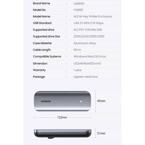 Ugreen case para ssd m.2 usb 3.1 tipo c gen 2 10gbps nvme premium modelo cm320 70691