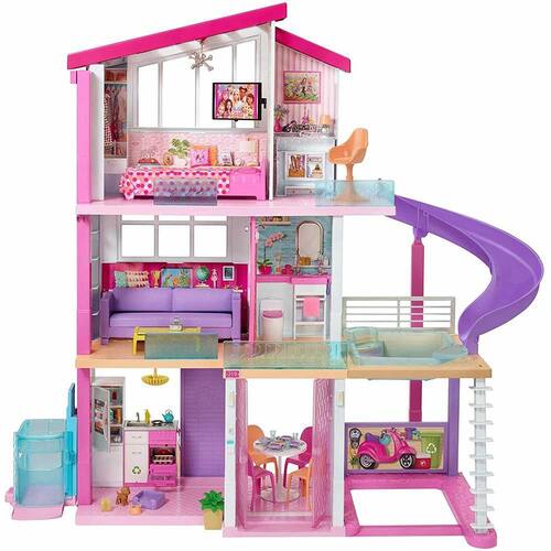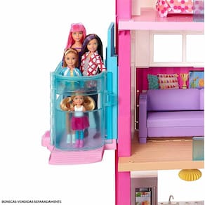 CASINHA DE BONECA - BARBIE DREAMHOUSE - CASA DOS SONHOS DA BARBIE - 70 ACESSÓRIOS - MATTEL: A casinha de boneca Barbie Dreamhouse é o brinquedo perfeito para que sua pequena viva novas aventuras. Com mais de 1,15 m de altura e 1,20 m de largura, a Casa dos Sonhos da Barbie apresenta recursos incríveis para a brincadeira ser completa. São três andares, oito quartos, uma garagem para carro (veículo não incluído) e um escritório em casa, um elevador (funciona de verdade) com espaço para quatro bonecas ou uma Barbie em cadeira de rodas (bonecas não incluídas). A casa ainda dispõe de piscina com escorregado, móveis divertidos transformáveis, luzes, sons e mais de 70 acessórios, incluindo um adorável cachorrinho. As decorações e móveis dos ambientes internos e externos inspiram brincadeiras em todos os ângulos, e as transformações proporcionam diversão 2 e 1. O sofá se transforma em beliches, a mesa de centro vira uma cama para bonecas menores, a lareira se torna um escritório, a geladeira abre as portas, o forno abriga uma churrasqueira nos fundos. Luzes e sons adicionam toques ainda mais realistas a brincadeira (o forno acende e o cronômetro bate, o fogão chia com a frigideira e assobia com a chaleira e o vaso sanitário dá descarga) Há infinitas histórias para contar e maneiras ilimitadas de explorar a vida na Casa da Barbie. Porque com a Barbie tudo é possível. INFORMAÇÕES: - Produto: Casa dos Sonhos da Barbie com Elevador e 70 Acessórios - Marca: Mattel - Coleção: Barbie Dreamhouse - Tipo: Casinha de Boneca com Acessórios - Tamanho: 1,15 m de altura e 1,20 m de largura - Conteúdo: Casa, 70 acessórios que incluem móveis, utensílios domésticos e um cachorro - Recomendação: para crianças a partir de 3 anos de idade ESPECIFICAÇÕES: - Referência: GNH53 - Embalagem (C x A x L): 76 x 76 x 23 cm - Peso (kg): 11,93 - Material /Composição: Plástico - Certificado: CE-BRI/INNAC-00128-04A-NM-300/2002 BENEFÍCIOS DE BRINCAR: 1 - Eleva a autoestima 2 - Estimula o raciocínio 3 - Exercita o imaginário 4 - Desenvolve a criatividade 5 - Promove a socialização e interação 6 - Desenvolvimento neuropsicológico 7 - Estimula habilidades motoras básicas 8 - Incentiva a comunicação e linguagem 9 - Desenvolve aspectos emocionais e afetivos AVISO: - As imagens são meramente ilustrativas - Os pesos e medidas são aproximados - As cores e estampas dos produtos podem ter variações - As informações são de responsabilidade do fabricante ou fornecedor ATENÇÃO: - Comprar Casa dos Sonhos da Barbie com Elevador - Mattel é fácil - Condições de pagamento facilitadas - Entrega para todo o Brasil - Oferta válida por tempo limitado ou enquanto durarem os estoques