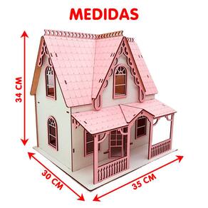 Casinha De Boneca Branco Rosa Miniatura Em MDF Barbie 34cm -