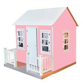 Casinha De Brinquedo Com Cercado E Cortinas Rosa/branco - Criança Feliz