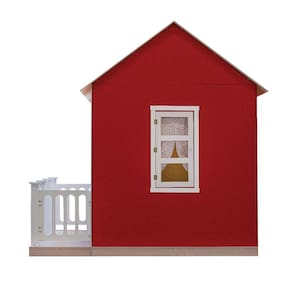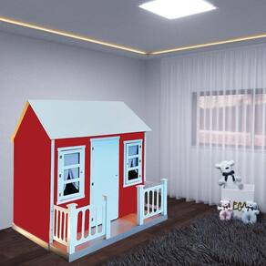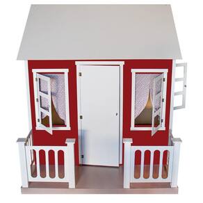 Casinha De Brinquedo Com Cercado E Cortinas Vermelho/branco - Criança Feliz