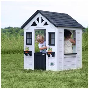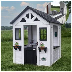 Com um design moderno e clean, a Sweetwater se adapta facilmente a qualquer espaço de recreação infantil. Suas janelas amplas com detalhes em preto permitem a entrada de luz natural e uma brisa agradável. A parte da frente é decorada com suportes para vasos de flores, trazendo um toque especial para qualquer estação do ano. A porta de meia porta é prática e estilosa, facilitando o acesso dos pequenos.