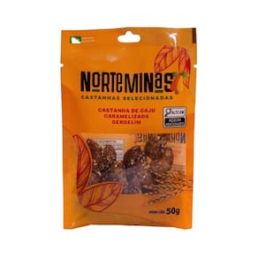 Castanha de Caju Caramelizada com Gergelim Norte Minas 50g Surpreenda seu paladar com a deliciosa Castanha de Caju Caramelizada com Gergelim Norte Minas 50g, um snack inovador que une a cremosidade da