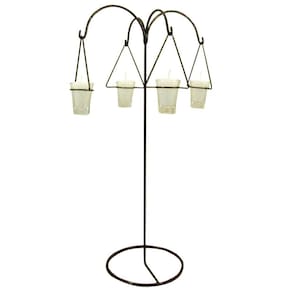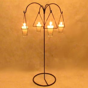 Castiçal 4 pingentesAcompanha 4 velas no copinho na cor brancaProdutos da marca Velitas.Somos uma fábrica, de velas e ferros decorativos, desde de 1984 no mercado.Castiçal:Peça em ferro com pintura eletrostática, que garante uma maior resistência e durabilidade em comparação com peças esmaltadas ou com pintura spray.Pintura marrom escura, quase preta, com minúsculos pontos pretos e dourados. A pintura dá um efeito especial a peça.Peça produzida de forma artesanal.Medidas do castiçal:Altura: 65 cm profundidade: 33 cm largura: 30 cmCopinho de vidro:O copo de vidro é da Nadir Figueiredo, além de ser resistente ele é facilmente encontrado em vários lugares no Brasil.Medidas do copo:altura: 7 cm diâmetro superior boca : 5,2 cm diâmetro inferior base : 3,5 cmVelas:Velas de parafina pura Petrobras, contêm apenas corante nas velas coloridas.A vela pura garante uma maior durabilidade, não produz fumaça preta que possa sujar a parede ou criar um aspecto desagradável, e também possui um cheiro suave e natural da parafina. Nossas velas no copinho foram projetadas para fácil reposição já que são removíveis, o produto acompanha indicações de uso para facilitar a limpeza do copo após a utilização. Duração da vela:Aproximadamente 12 horas, o tempo pode variar de acordo com a temperatura ambiente.Medidas da vela:altura: 5,2 cm diâmetro superior boca : 4,5 cm diâmetro inferior base : 2,7 cm Imagens meramente ilustrativas, o produto pode apresentar pequenas variações por se tratar de um produto artesanal. Aviso de segurança:Acenda as velas longe de produtos inflamáveis, de corrente de ar e em recipiente protetor.Não deixe velas acesas desacompanhadas. Marca: Velitas (r)
