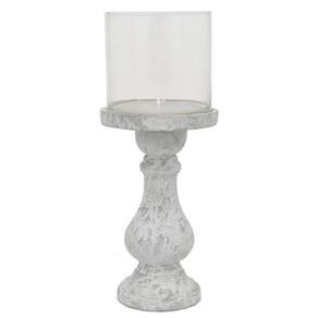 Castiçal Benjara Kris com tampo de vidro Hurricane, cerâmica branca cinza de 7 polegadas
