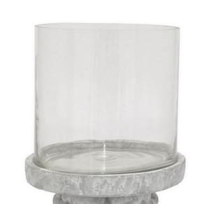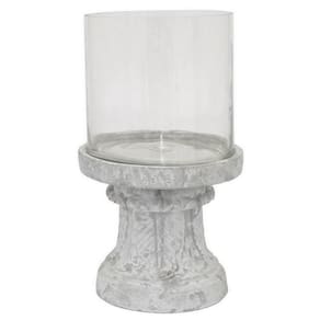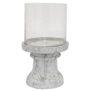 Castiçal Benjara Kris, tampo de vidro Hurricane, cerâmica branca cinza de 14 polegadas