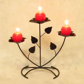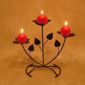 Castiçal: Peça em ferro com pintura eletrostática, que garante uma maior resistência e durabilidade em comparação com peças esmaltadas ou com pintura spray.