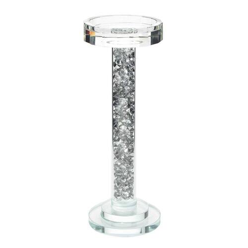 Nada melhor do que deixar sua casa decorada do seu jeito. O castiçal de vidro é ideal para complementar a decoração da mesa de ceia. Uma boa ideia é combinar velas com tonalidades e tamanhos diferentes e dispor sobre um souplast. Escolha os melhores e mais bonitos enfeites, use a criatividade e decore sua casa surpreendendo e encantando seus convidados. Ficha técnica Comprimento: 13 cm Largura: 13 cm Altura: 25 cm Cor: Prata Material: Vidro