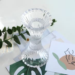 Adicione um toque de sofisticação e aconchego à sua decoração com o Castiçal de Vidro Sodo-Cálcico. Com design texturizado e transparente, este acessório combina a beleza clássica do vidro com um estilo clean e moderno.