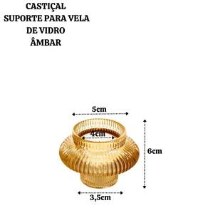 Informações Técnicas: Composição: Vidro. Altura: 6cm. Diâmetro da parte meio: 6cm. Diâmetro da base: 3,8cm. Diâmetro da borda: 5,2cm Diâmetro onde coloca a vela: 4,5cm. Peso: 194 gramas.