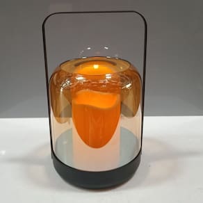 CÚPULA Altura: 15,5 cm Largura: 13,8 cm Profundidade: 13,8 cm Peso: 0,29 Kg Material: Vidro Cor: Âmbar