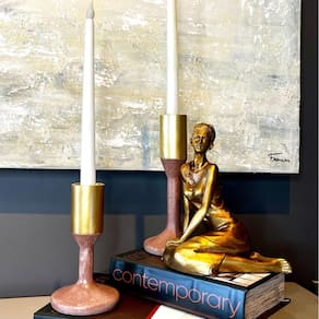 Adquira o Seu: Encontre o castiçal em poliresina marrom e dourado perfeito para sua casa em nosso site. Transforme seu ambiente com a elegância e a sofisticação da Inigual Decor.