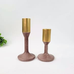 Castiçal Marrom E Dourado Candelabro Resina Kit 2pc Castiçal em resina Marrom e Dourado - Elegância e Sofisticação para Seu Lar Inigual Decor