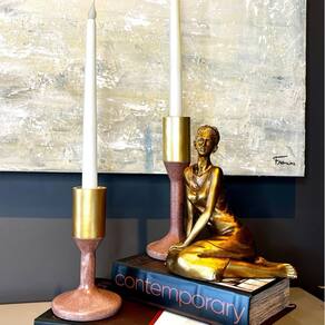 Adquira o Seu: Encontre o castiçal em poliresina marrom e dourado perfeito para sua casa em nosso site. Transforme seu ambiente com a elegância e a sofisticação da Inigual Decor.